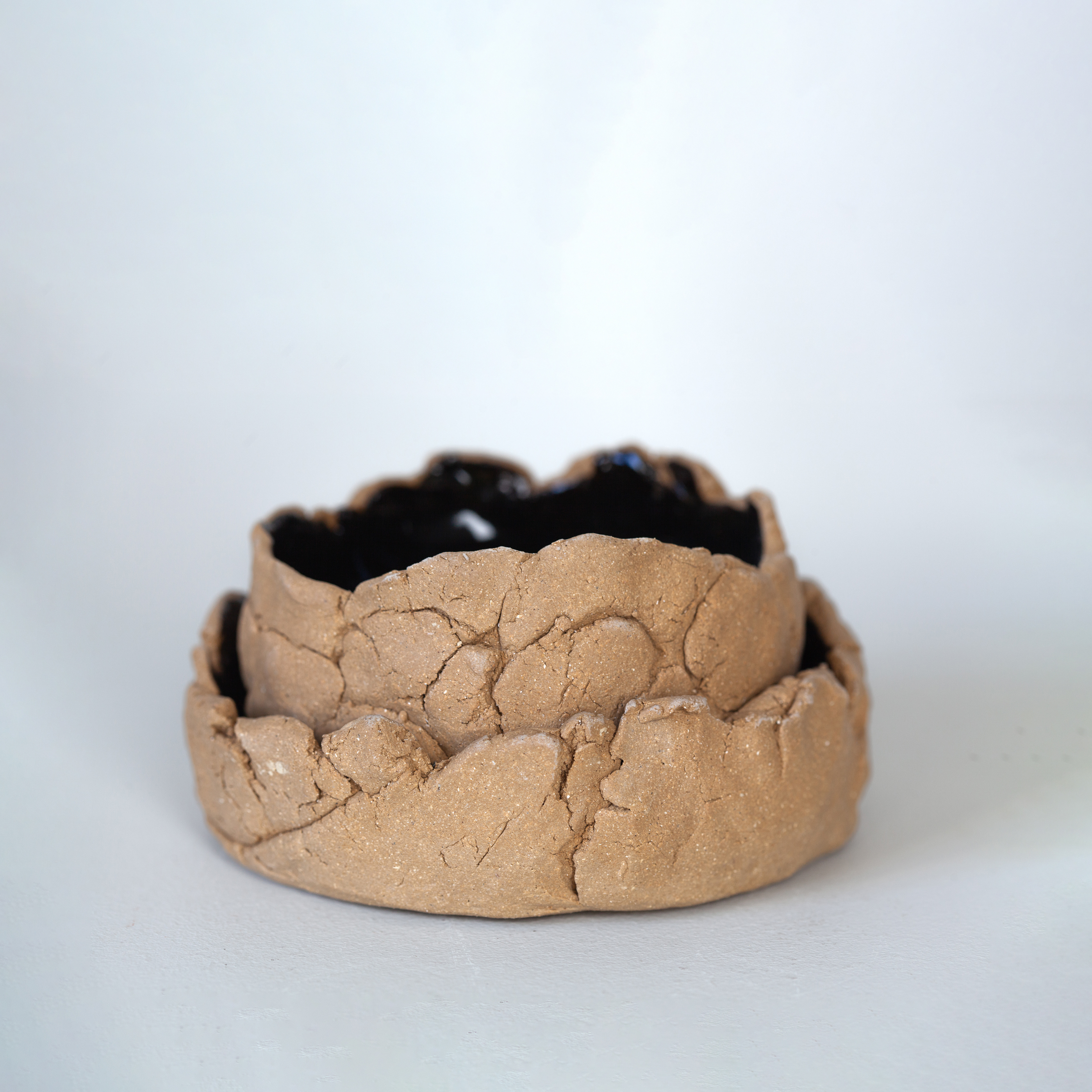 Raw Ceramic Planter with Black Glaze